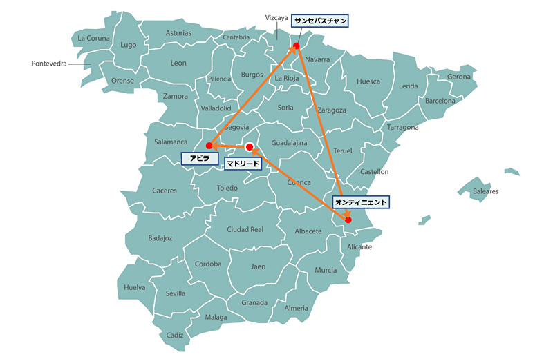 今回の渡航では、アビラ、サンセバスチャン、オンティニェント、マドリードの4つの都市を、計8日間かけて訪れました。