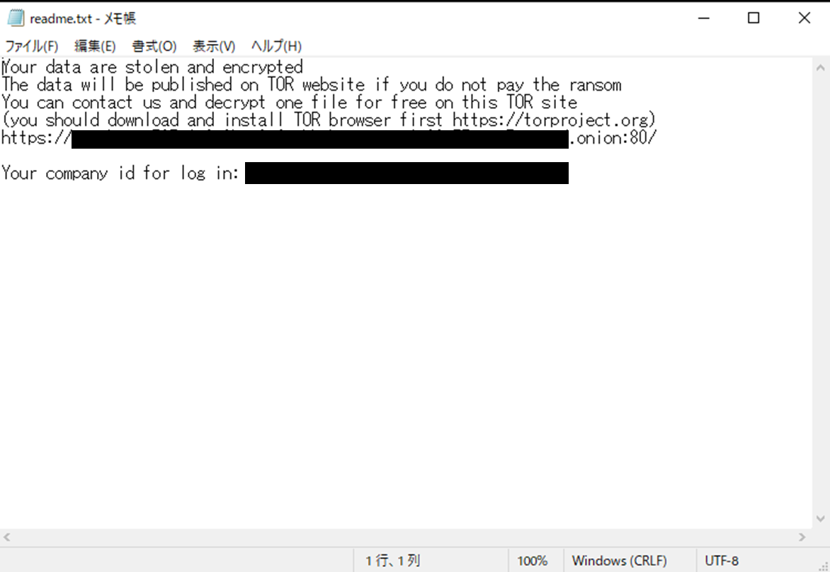 暗号化されたファイルが存在するフォルダーにtxt形式のランサムノートを作成します。