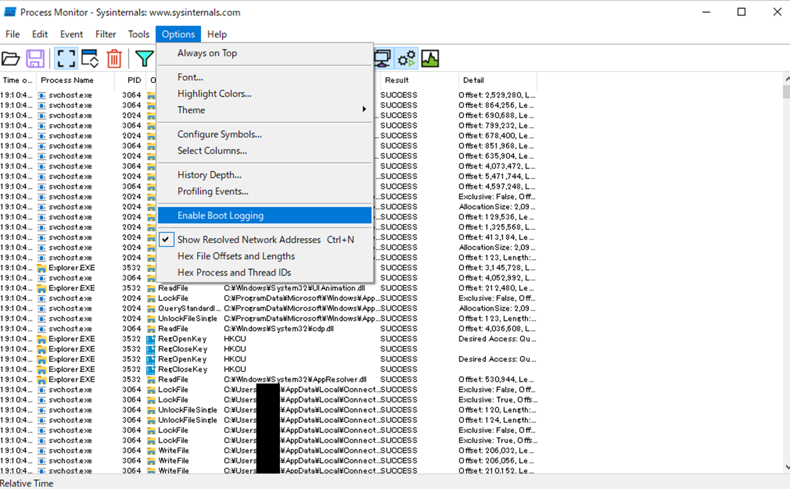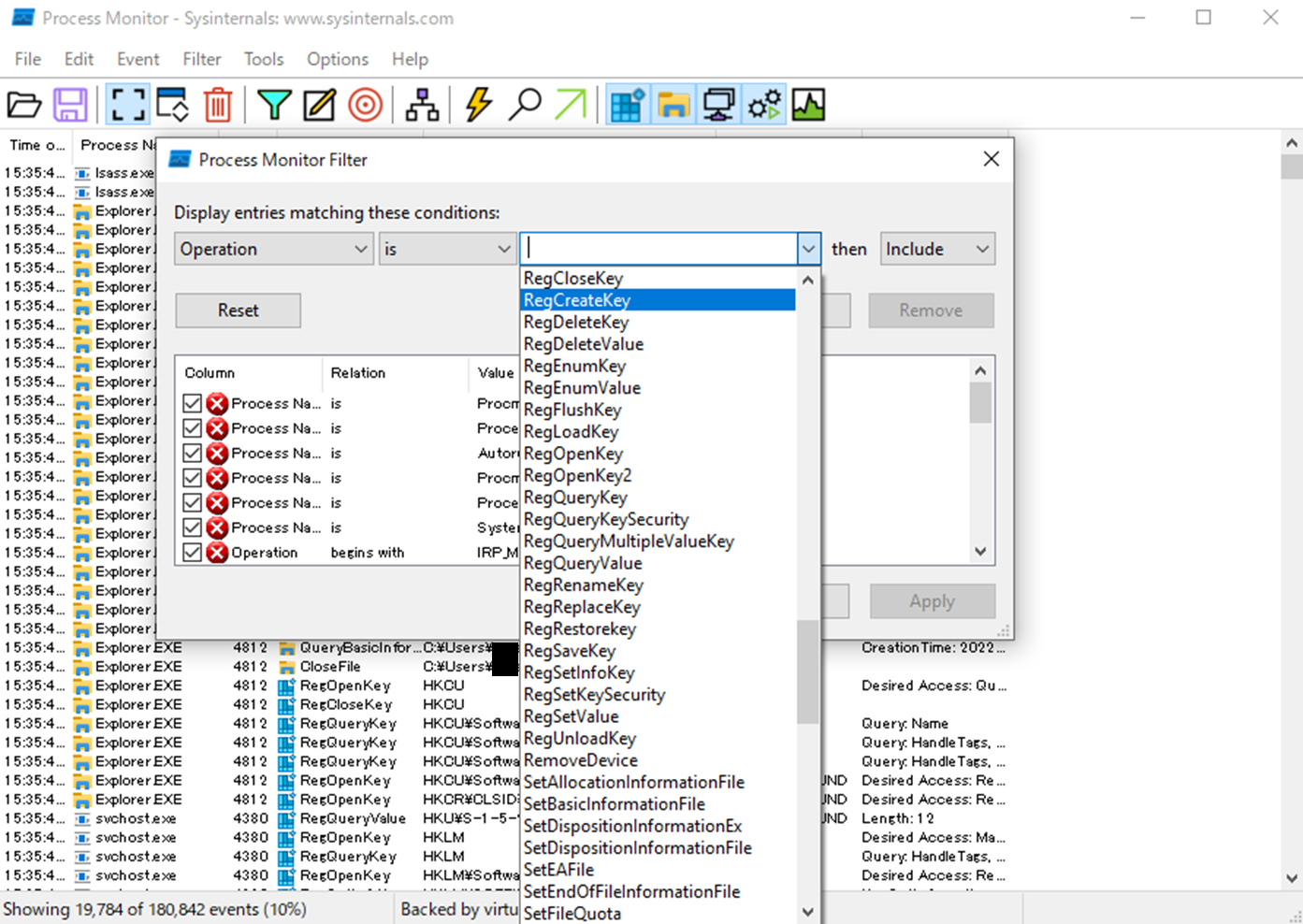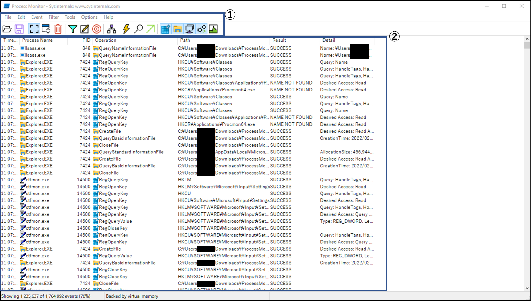 ②ProcessMonitorのログの見方