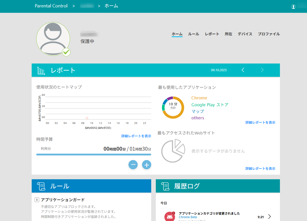 保護者は、ESET HOMEの「Parental Control 」にて、子の端末を管理することができます。また、保護者が所有する端末にESET Parental Control for Androidをインストールして管理することも可能です。